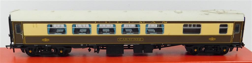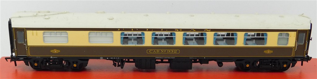 A Bachmann Pullman Car number 332 with working lights, NEM couplings, dirty roof, in good used condition, no original packaging