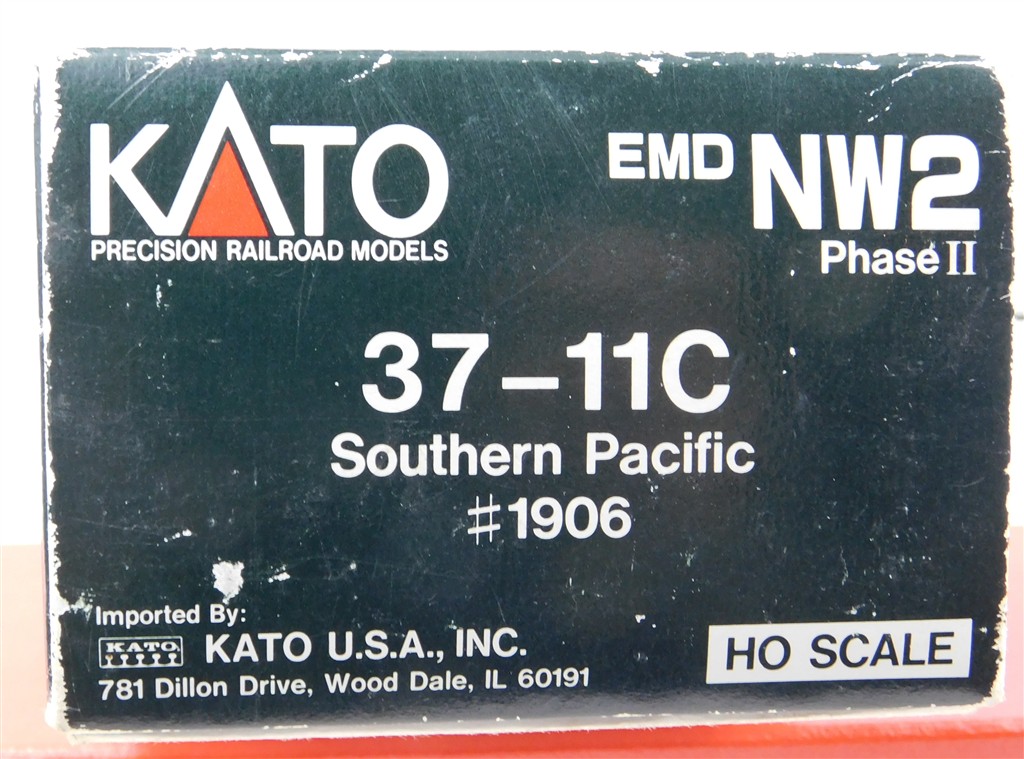 A Kato 37-11C EMD NW2 Phase II Diesel Loco Southern number 6504, Kadee type couplings, good runner with working headlight, in good clean condition, supplied in an incorrect original box