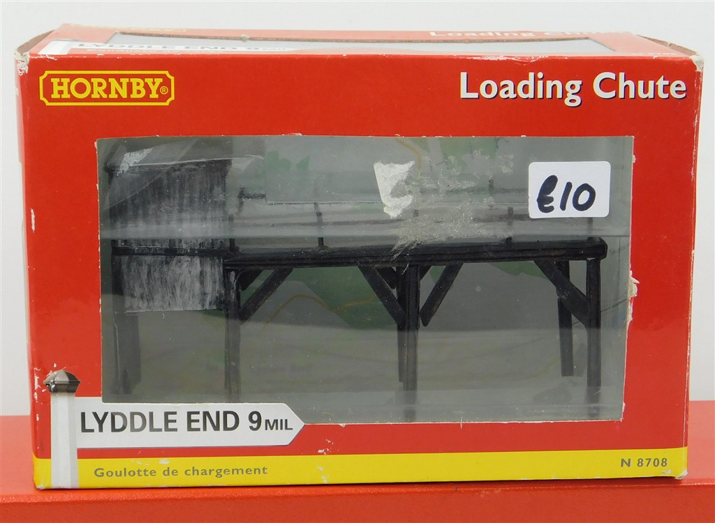 A Hornby N8708 N gauge Lyddle End Loading Shute, in good used condition, supplied in the original box