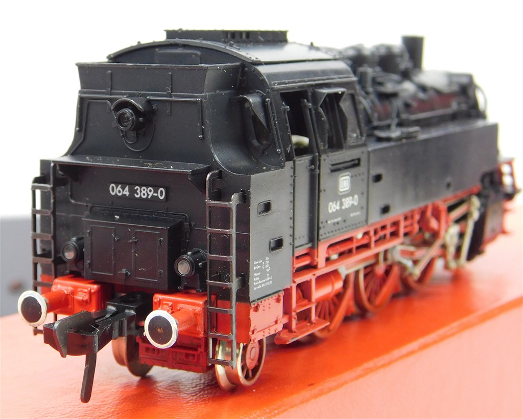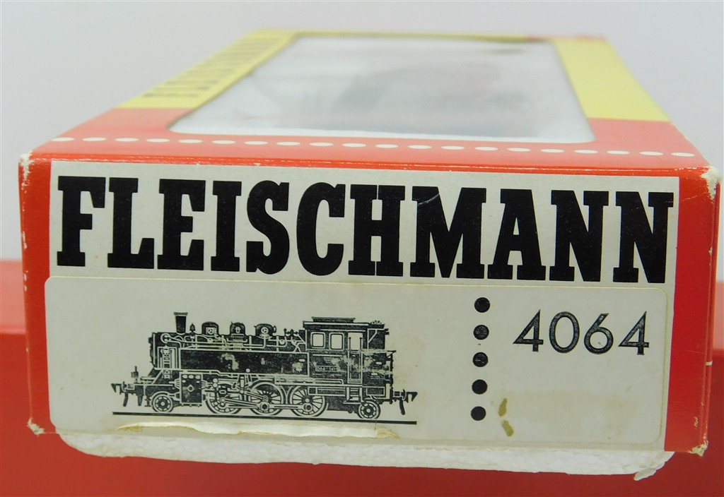 A Fleischmann 4064 German DB class 64 steam loco, Lenz DCC fitted (hardwired, #6489), good runner on both DC and DCC with working bunker lights only, in good condition, fitted with pivoted Fleischmann Profi couplings, supplied in the original box. Note this is a 1:80 scale model.