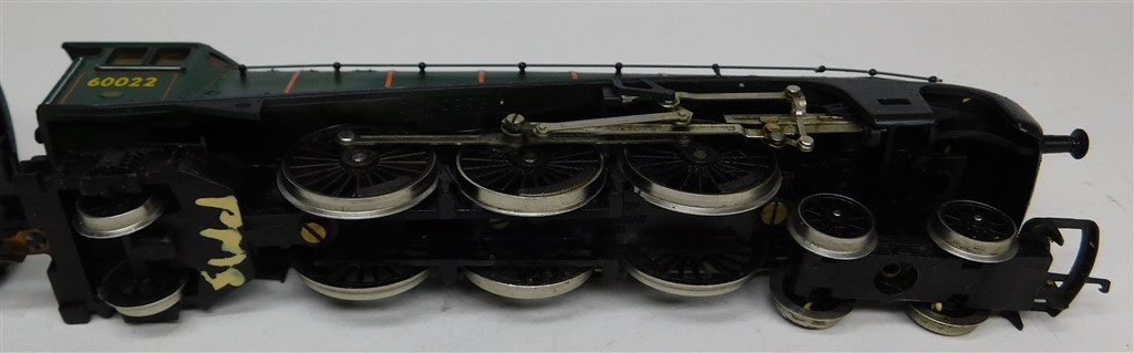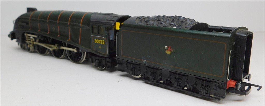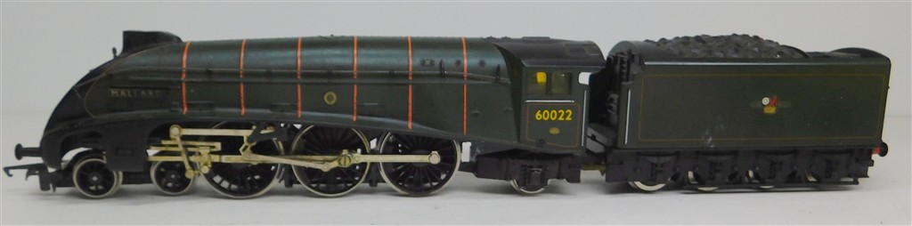 A Hornby tender drive BR 60022 Mallard, reluctant runner, needs a thorough electrical clean and careful lubrication, in fair condition, no original box