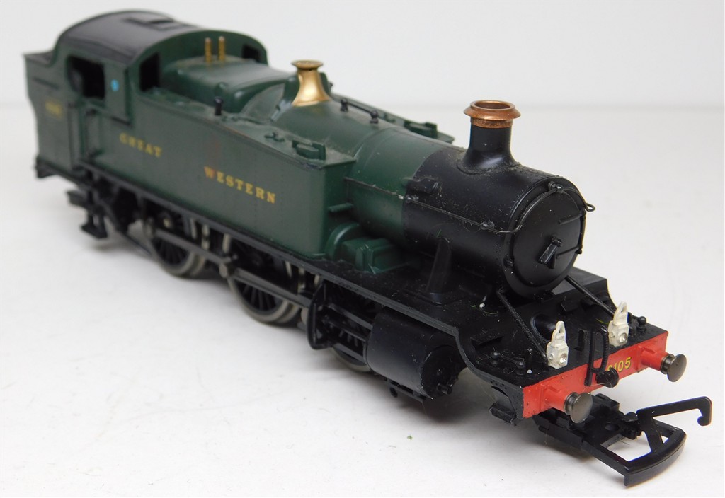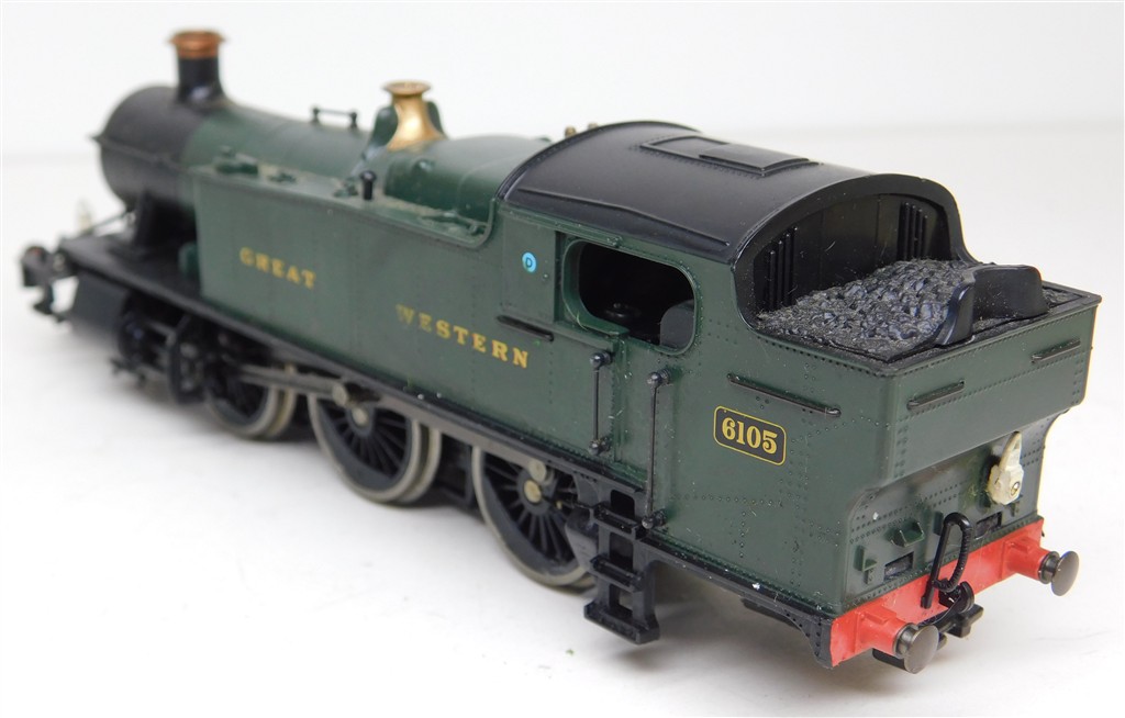 An Incomplete Hornby GWR Prairie 6105, good runner, annoyingly missing the pony wheels and retaining clips, added lamps, needs a good clean, in fair cosmetic condition, no original box, sold as a project.
