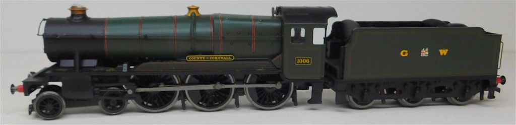 A Hornby loco drive GWR 1006 County of Cornwall, non-runner: chassis seized solid, no sign of life when power applied, added cotton wool in chimney, in good cosmetic condition, no original box, sold as a project.