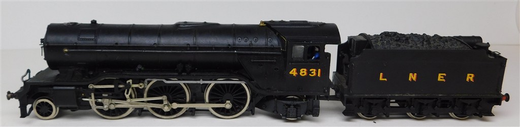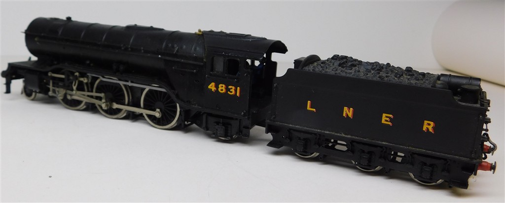 A Bachmann split frame V2, noisy runner, needs a thorough electrical clean and lubrication, missing chimney, in fair cosmetic condition, no original box, sold as a project