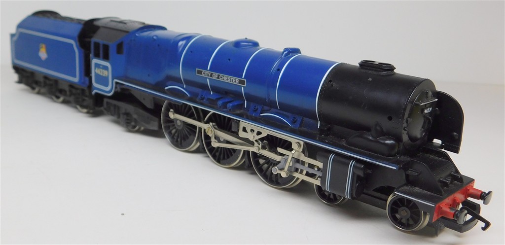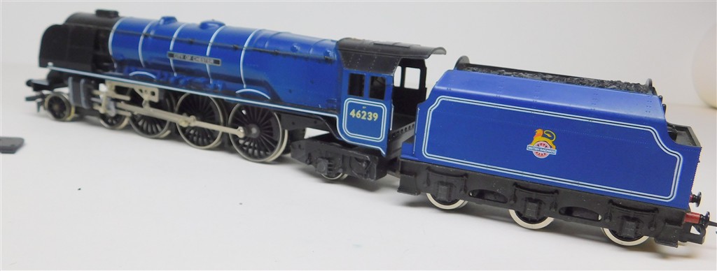 A Hornby tender drive BR ex LMS Duchess 46239 City of Chester, reluctant runner, needs a thorough electrical clean and lubrication, loose smoke deflector one side and missing some handrails otherwise in good cosmetic condition, no original box