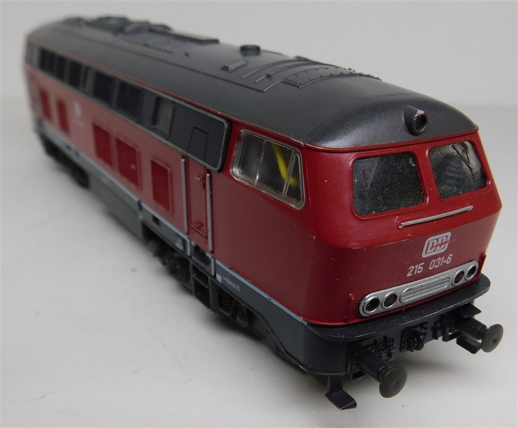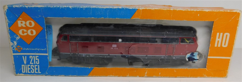 A Roco 4151 DB V215 diesel loco, good steady runner but the headlights don't work properly and need attention, in good used condition, supplied in the tatty original box, sold as a project.