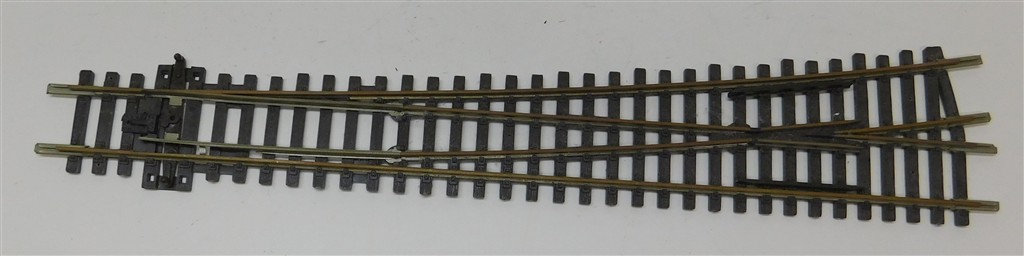 A Peco Large Radius Left Hand Insulfrog Universal Point, Code 100, older version with greater clearance on the frog and check rails, in good used condition, no original packet