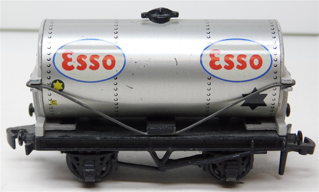 A Hornby Dublo 2 or 3 rail Esso tank wagon, open brake gear, plastic wheels fitted, in good used condition, no original box