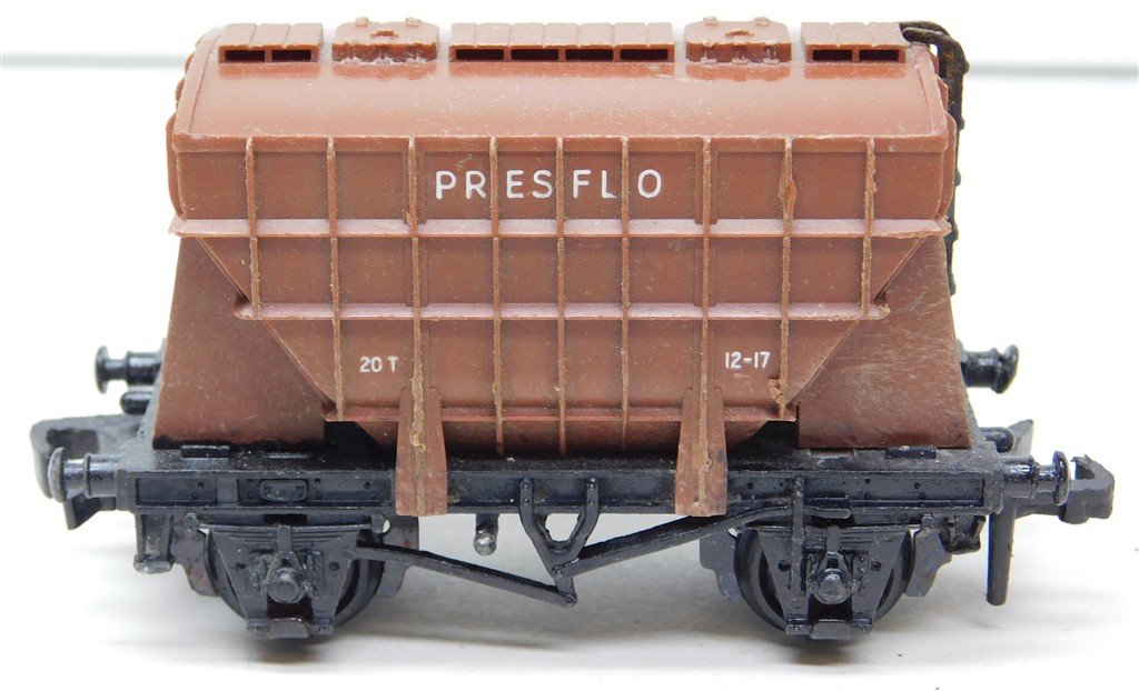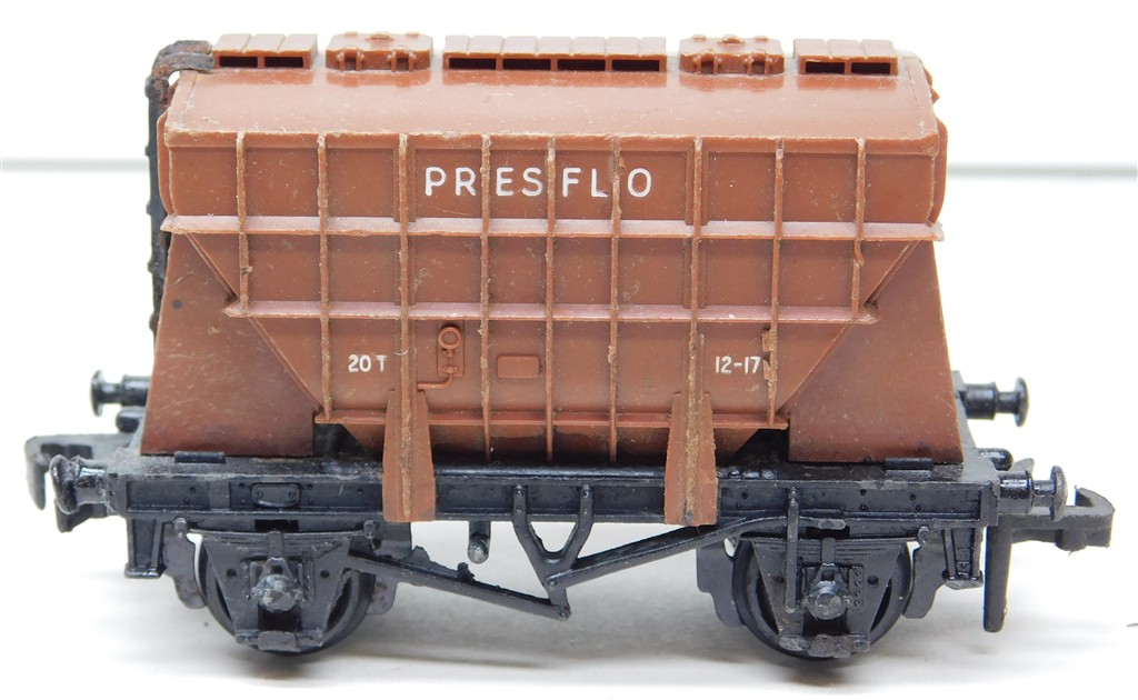 A Hornby Dublo 2 or 3 rail Presflo hopper wagon, open brake gear, plastic wheels fitted, in fair used condition, needs a clean, no original box