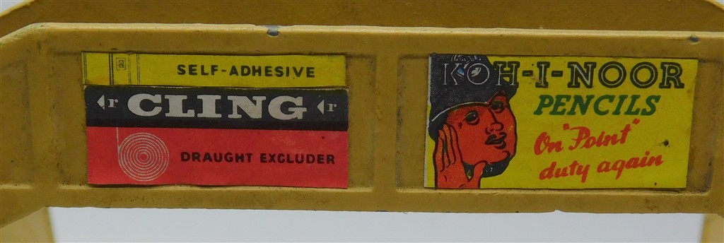Hornby Dublo: Hornby Dublo metal footbridge with added Cling and Koh-i-noor adverts