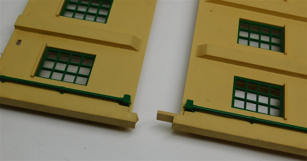 A Hornby Dublo plastic two-track loco shed kit, one broken and missing top upright at one end otherwise in good condition, one downpipe missing, roof needs a clean, complete with all screws and vents, supplied in a red original box