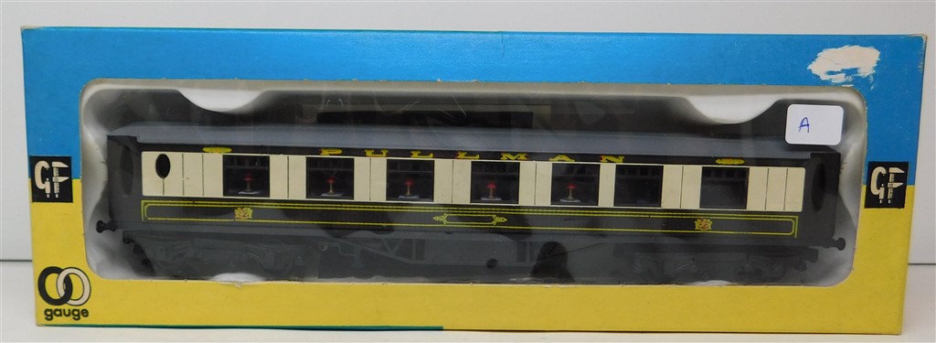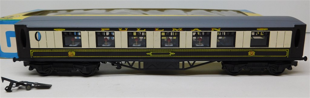 A Graham Farish Pullman car, unnamed, 1970s production, not warped, loose coupling otherise in good used condition, supplied in the original box with unused transfer sheet (A)