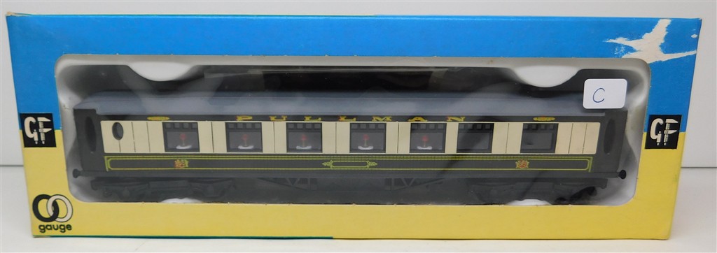A Graham Farish Pullman car, unnamed, 1970s production, not warped, in good used condition, supplied in the original box with unused transfer sheet (C)