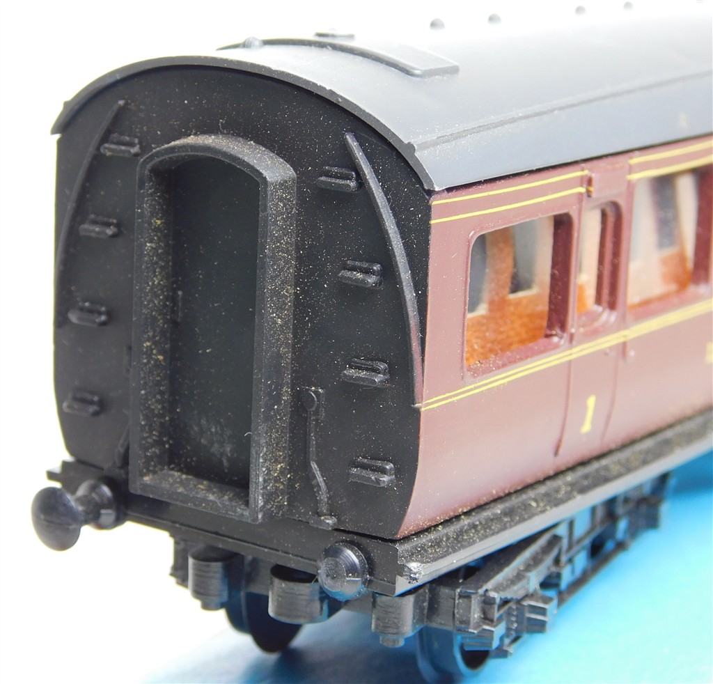 00 Coaches: Graham Farish LMS mainline coach number 9485, chip to corner of roof (C)