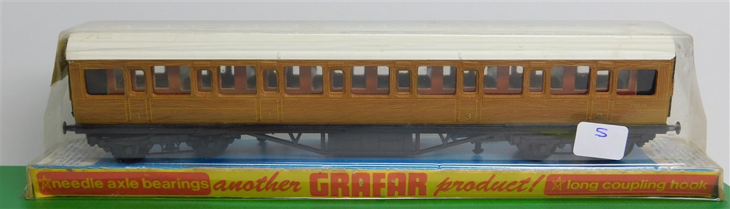 A Graham Farish LNER mainline coach with chip to corner of roof otherwise in good condition, supplied in the original box (S). One has a slightly bigger chip than the other...