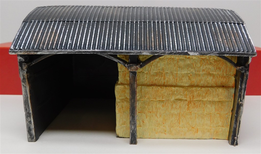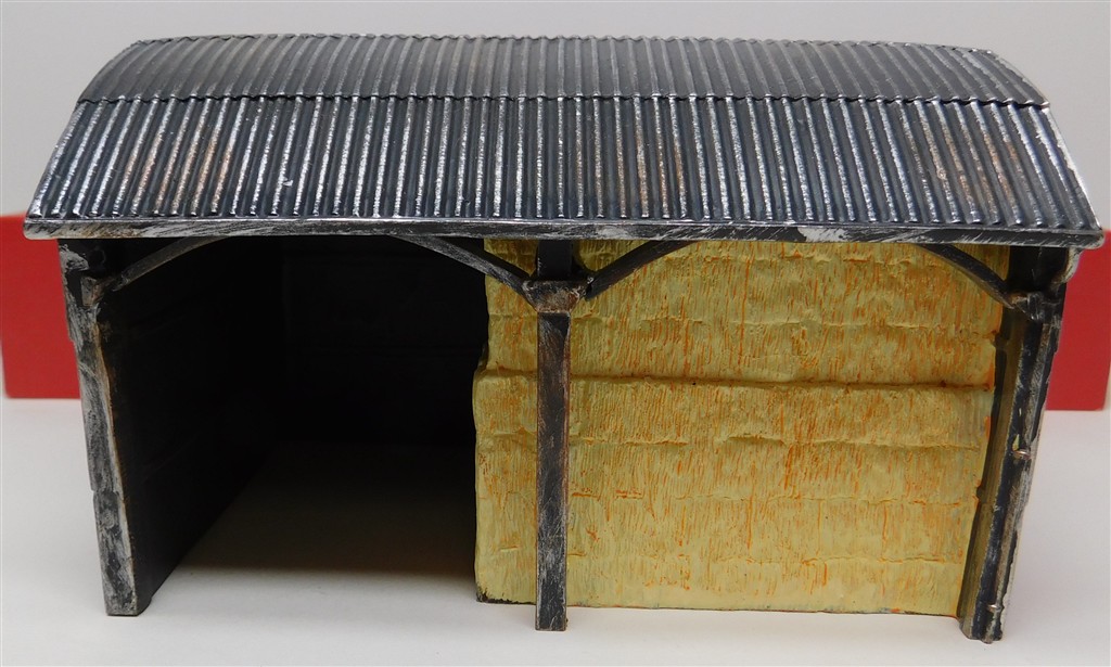 A Hornby Skaledale Dutch Barn half full with straw bales, in good condition, no original box