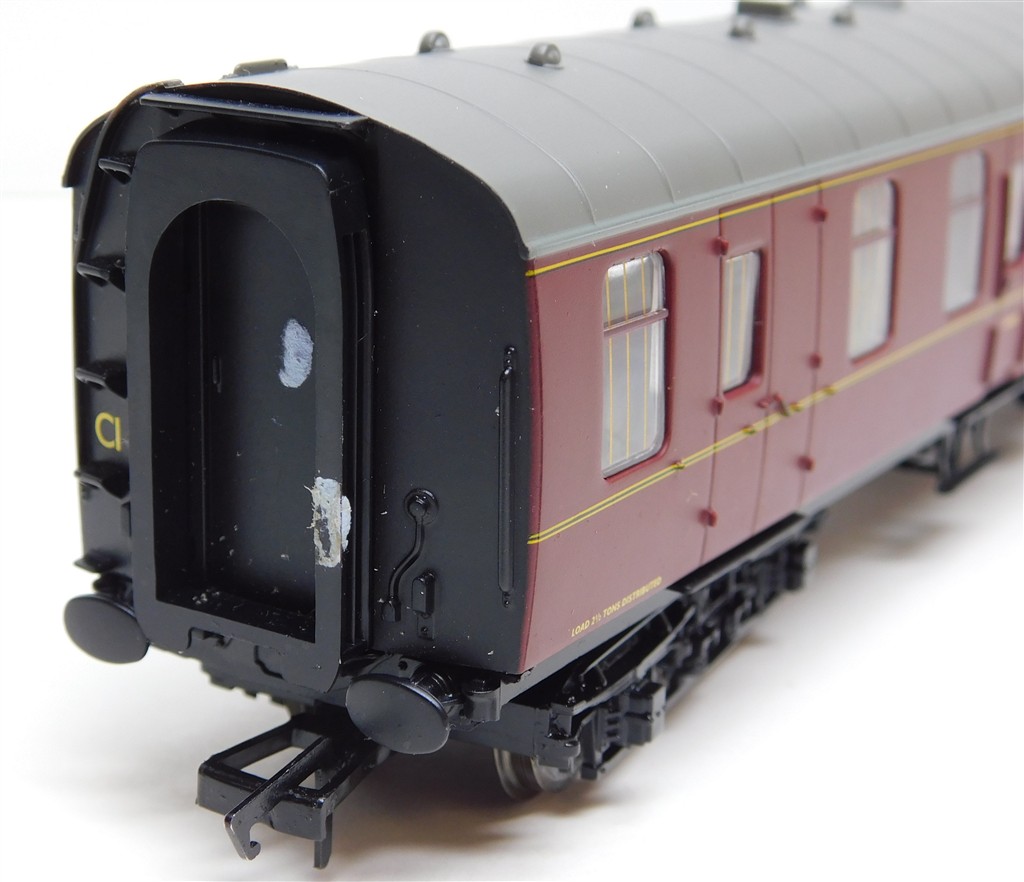 A Hornby R4788 BR Mk1 brake 2nd class open coach E9220, glue spots and blutac on one end otherwise in good condition, bogie mounted couplings, supplied in the original box