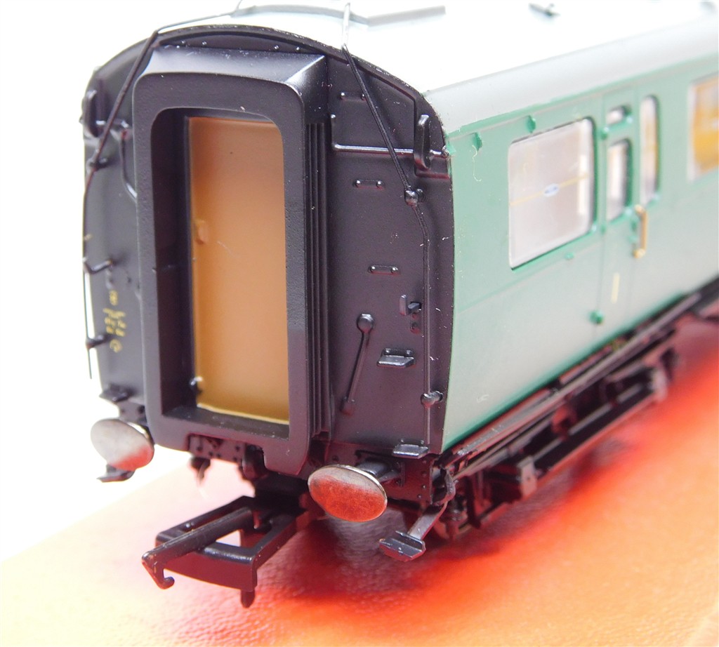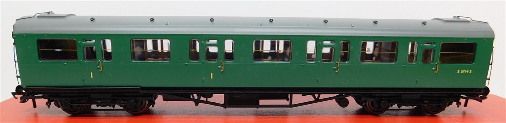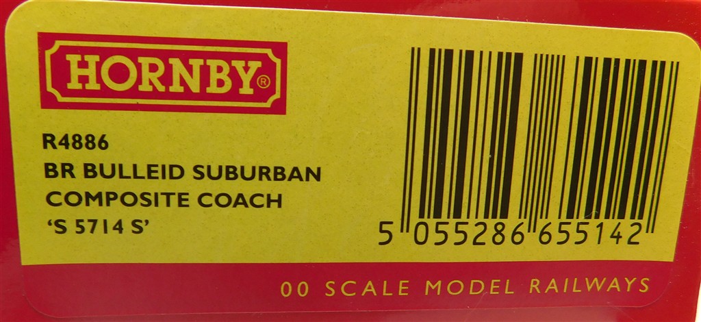 A Hornby R4886 BR Bullied Suburban Composite coach S5714S, extensive glue spots/blistered paint, in fair condition, supplied in the original box, please study the photographs carefully