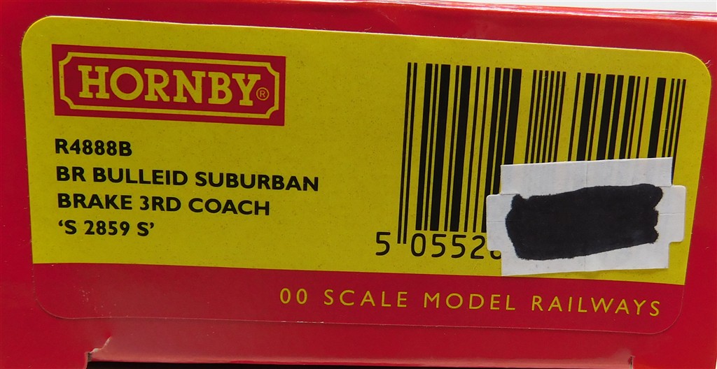 A Hornby R4888B BR Bullied Suburban Brake 3rd coach S2859S, glue spot one end and some loose/missing footboards otherwise in good condition, supplied in the original box