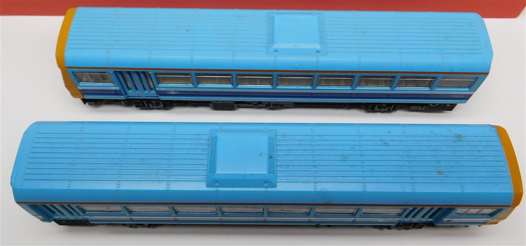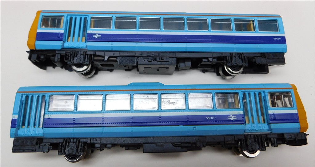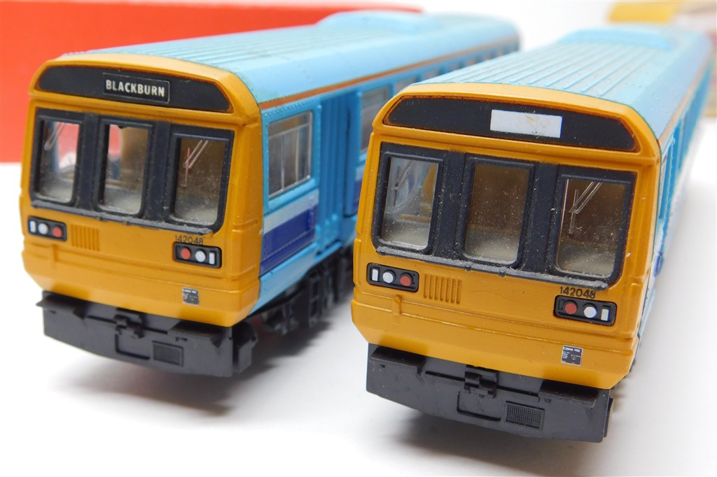 A Hornby 1980s production BR blue class 142 Pacer diesel railcar pair 142048, good if noisy runner, in good condition, no original box