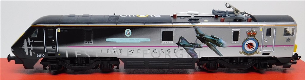 A Hornby LNER class 91 electric loco 91110 Battle of Britain Memorial Flight, ringfield motor drive, good runner, in good condition, no original box