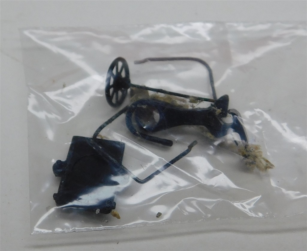 An incomplete wooden bodied Cherry Valley caboose with horn-hook couplings, missing roof footboards and other parts, with a small bag of parts, no original box