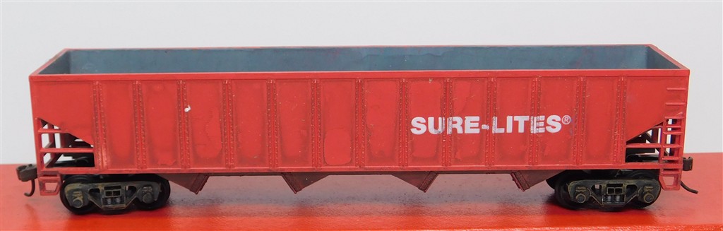 A Mehano H0 scale weathered Sure-Lites hopper car with Kadee type couplings, in good used condition, no original box