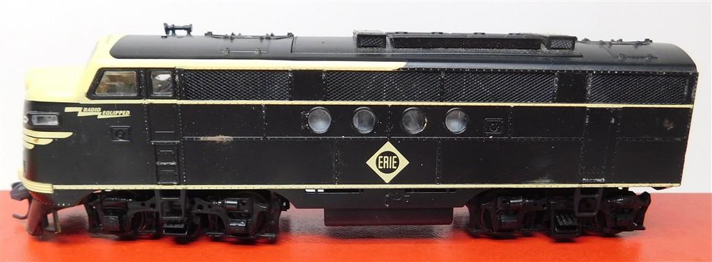An Athearn H0 scale Erie F7 type diesel loco, good runner with working directional headlight, Kadee front coupling, no rear coupling, missing horn, in good condition, no original box