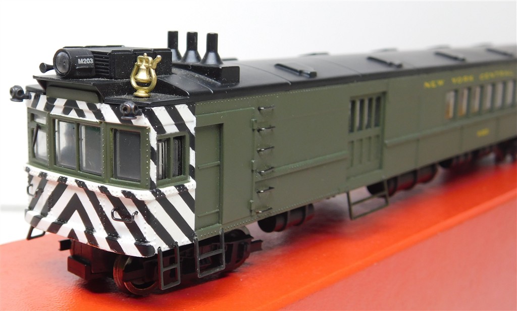 American H0: Bachmann 81412 H0 scale New York Central Doodlebug M-203, safety stripe livery, Lenz DCC fitted, good runner