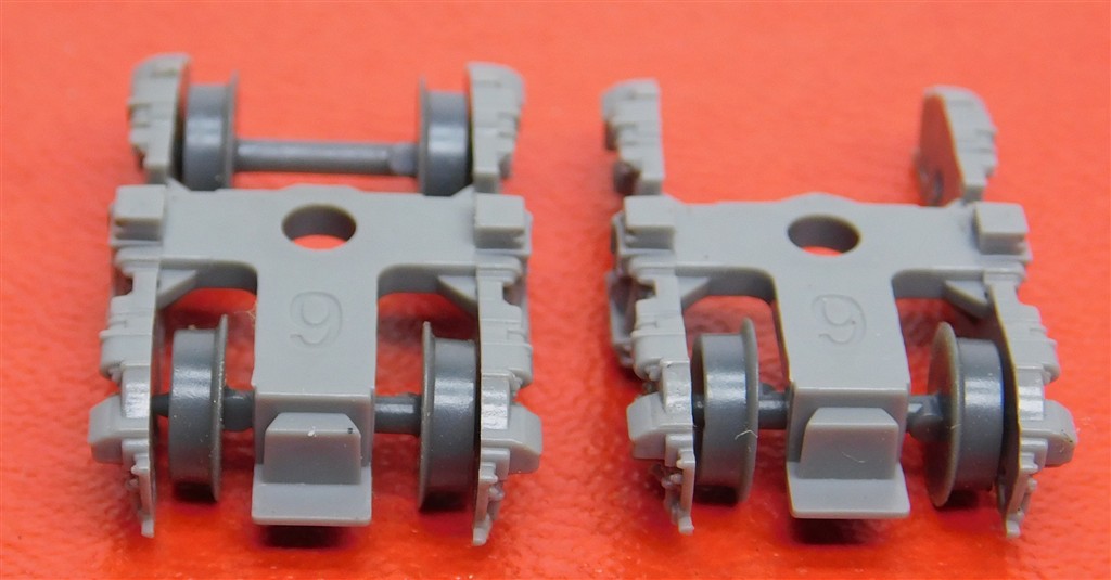 Japanese N: Pair Kato or similar N gauge bogies with plastic wheels, one wheelset missing
