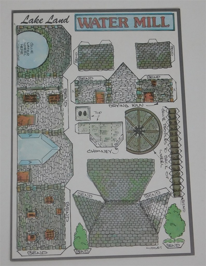 British N gauge: Fiddler's Green approximate N scale Lake Land Water Mill cardboard kit