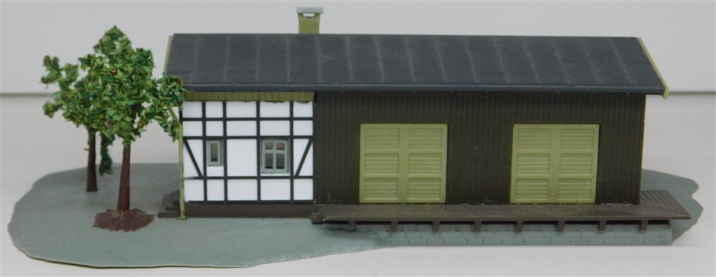 European N gauge: Vero N gauge German assembled goods shed with two trees