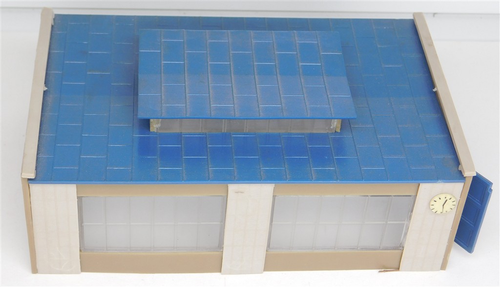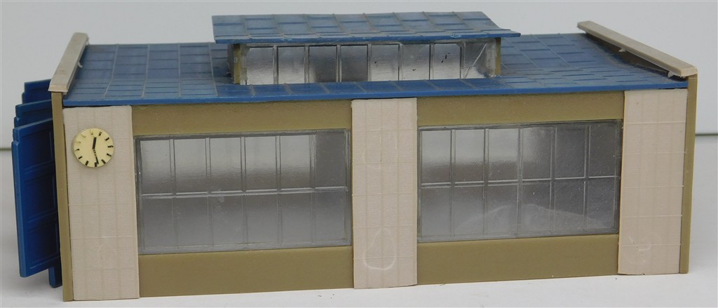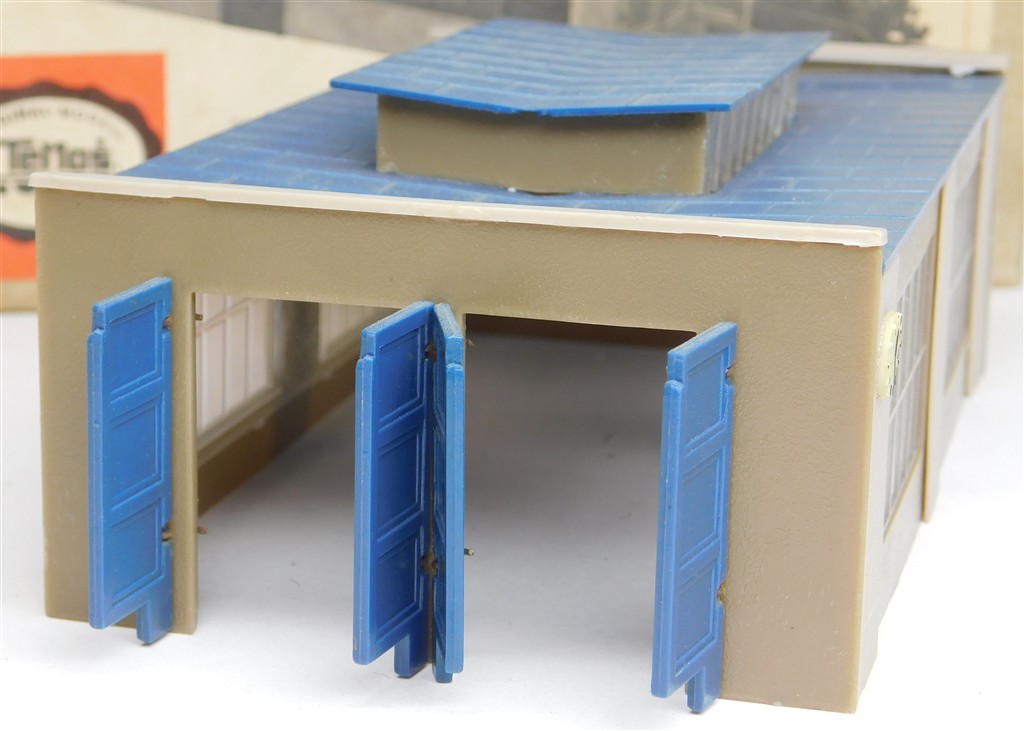 A Temos 513/567 N gauge German assembled plastic 2 track diesel loco shed, made in East Germany, opening doors, in good condition, supplied in the original box