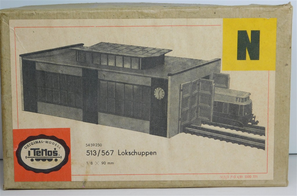 European N gauge: Temos 513/567 N gauge German assembled plastic 2 track diesel loco shed