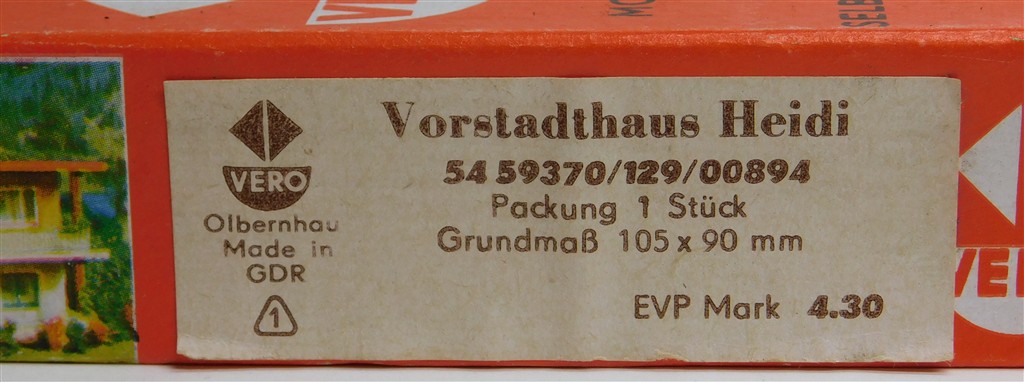 A Vero N gauge 129/00894 German flat roofed suburban house Heidi kit, complete, in good condition, supplied in the original box, 105mm by 90mm