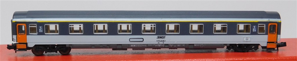 European N gauge: Roco N gauge SNCF French 1st class coach number 61 87 19-70 353-3, missing two wheelsets and one buffer