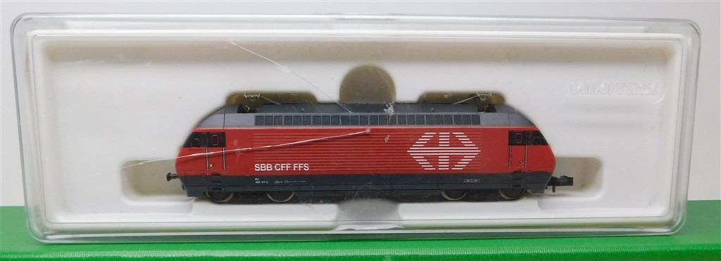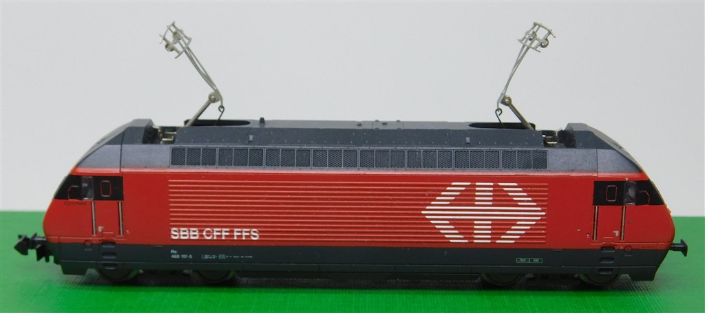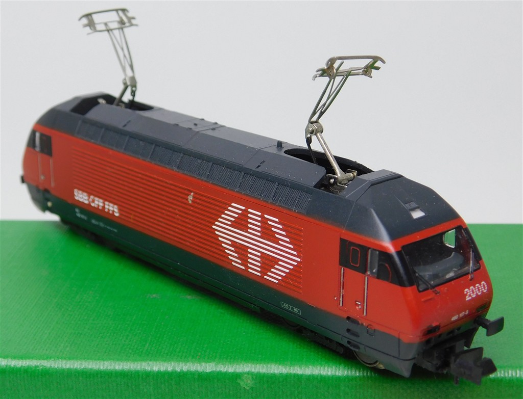 European N gauge: Minitrix 12523 N gauge Swiss Re460 electric loco 460 117-5, good runner, pantographs always up, missing buffers