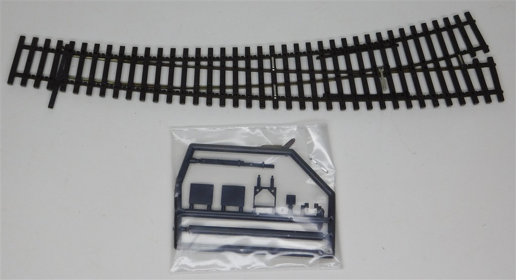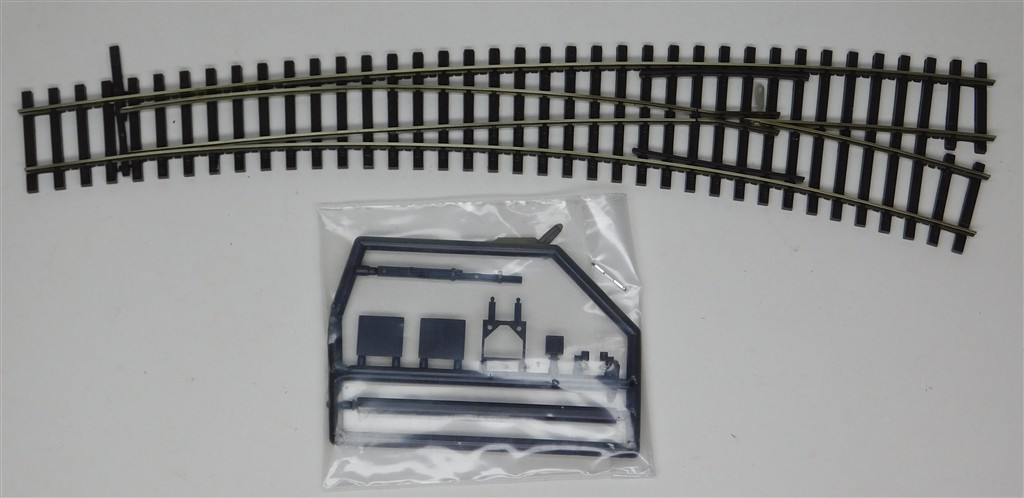 A Tillig 2.1mm rail height (code 83) right hand curved point with tag for wiring the frog, in very good condition, no original box, supplied with a bag of accessories