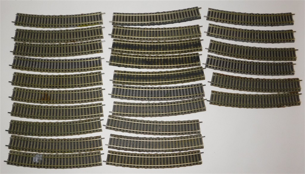 European H0 Track: 26 Fleischmann Profi-track 6138 647mm radius 18° curves, various weathering