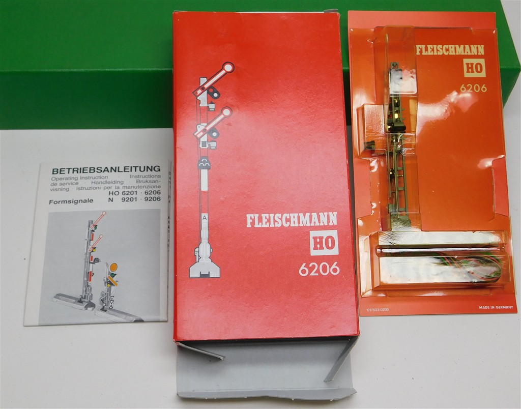 A Fleischmann 6206 electrically operated twin-arm Signal Hp1, appears unused, in very good condition, supplied in the original box