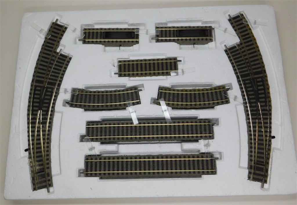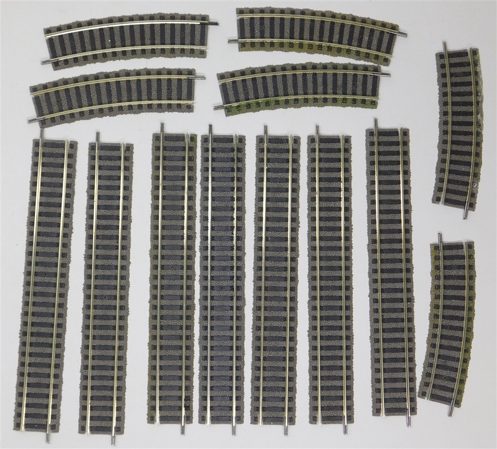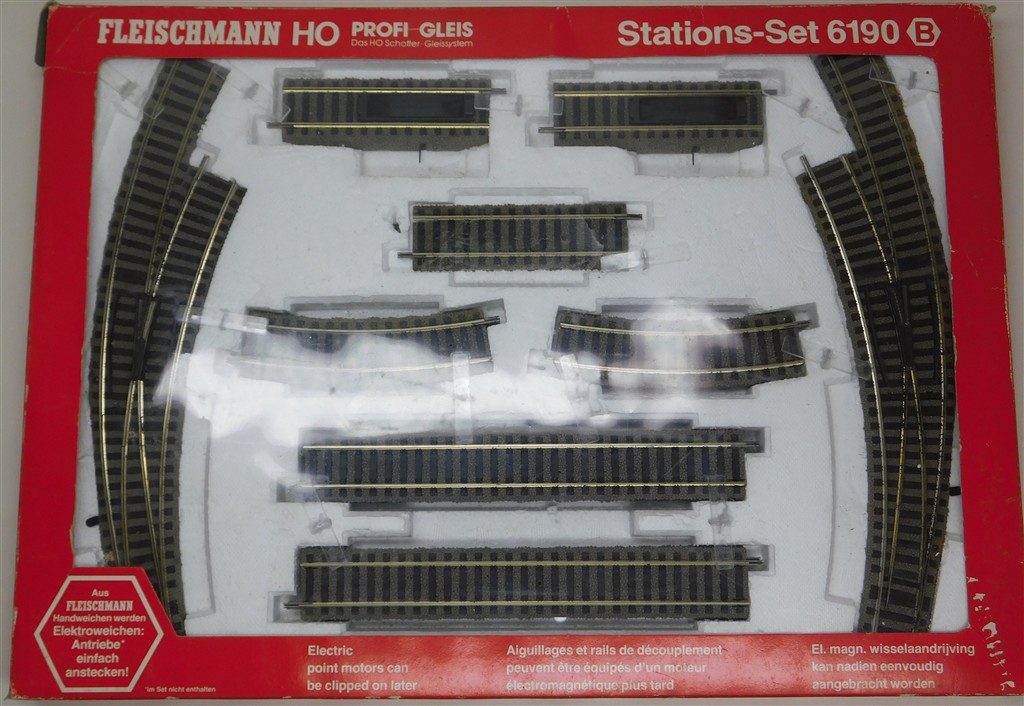 A Fleischmann Profi-track 6901 Station Set to extend a train set with two curved points (hand operated), two hand operated uncouplers and some staights and curves, some weathering, in good used condition, supplied in the original box