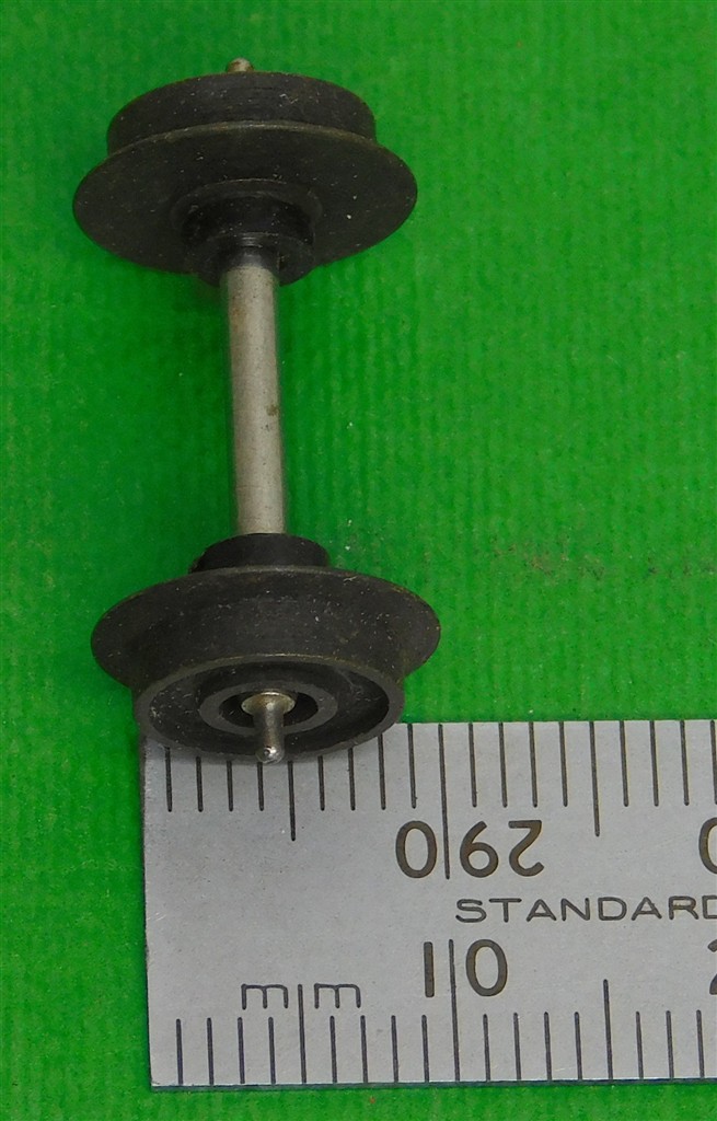 3 Trix 9mm diameter wheels with shouldered axles, insulated for 2 rail use, no original box