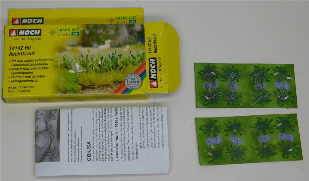 An opened but unused Busch H0 scale Laser-Cut Mini Plants kit supplied in the original box with instructions: 14142: Pickerel Weed (16)