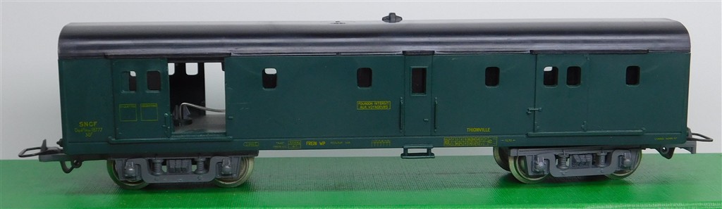 A Jouef French SNCF baggage car type Dqd, missing buffer heads, light does not work, in good used condition, no original box