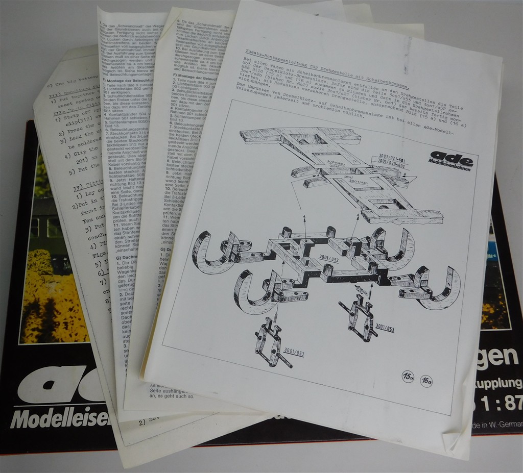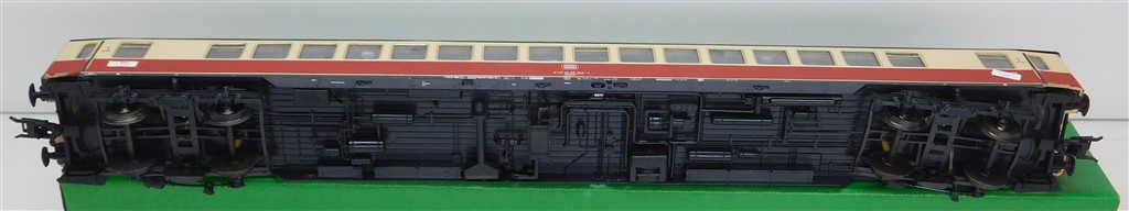 An Ade scale length well detailed high quality German DB InterCity Grossraum coach type Agümh number 61 80-18 80-004-4, in good clean condition, supplied in an incorrect original box. These coaches were made in the early 1970s and feature Willy Ade's own design close coupling mechanisms and coupling pockets which inspired the later NEM 362 standard but which are different, so couplings will need to be adapted to work with other stock.