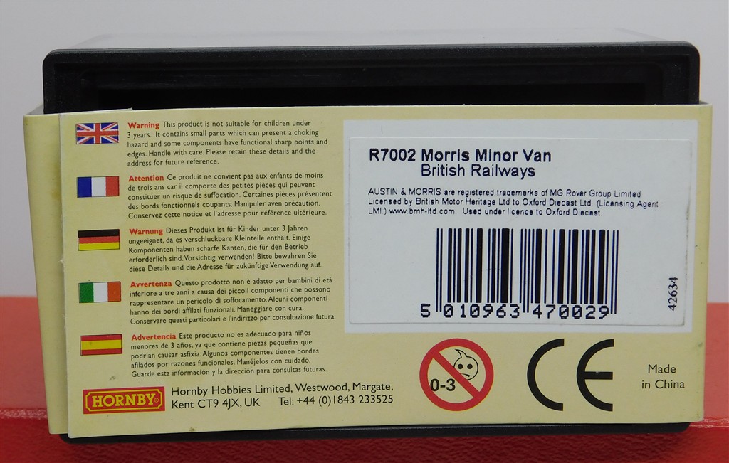 A Hornby R7002 Morris Minor Van British Railways, in good condition and supplied in the original box with sleeve.