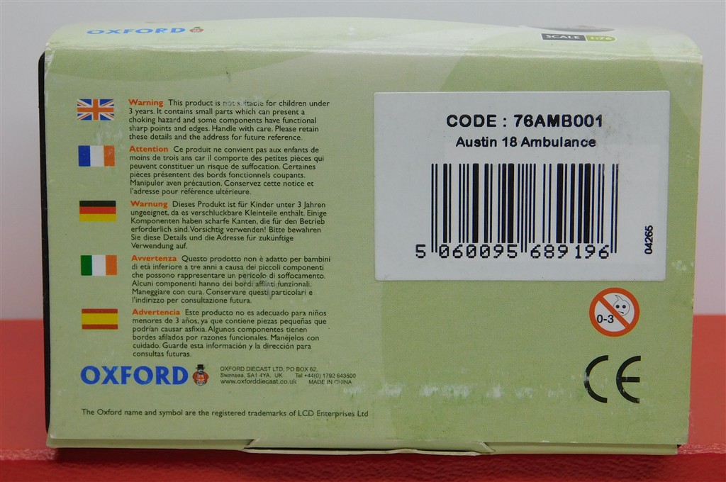 An Oxford 76AMB001 Austin 18 Ambulance, in very good condition and supplied in the original box with sleeve.