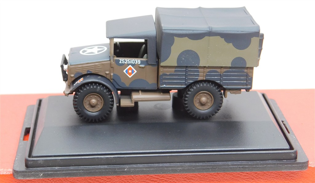 An Oxford 76MWD001 British Army Mickey Mouse Bedford MWD, in very good condition and supplied in the original box with sleeve.