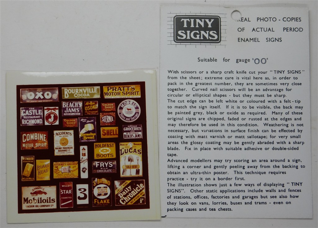 An opened but unused Tiny Signs Enamel Signs set 3, printed on photographic paper