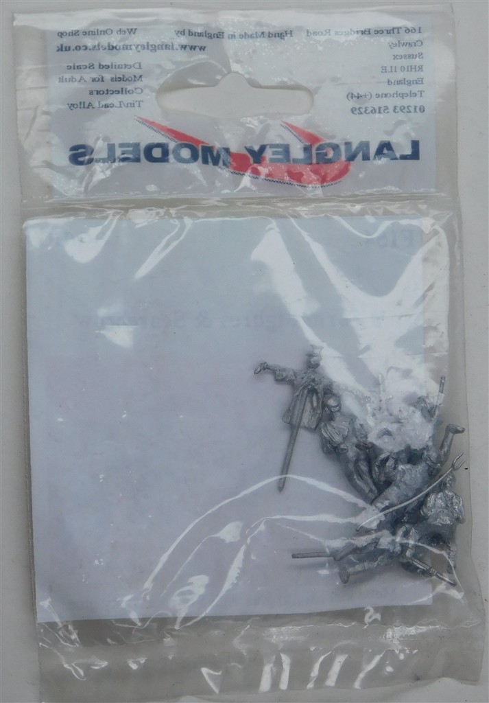 An unopened, white metal Langley Minature Models F154 unpainted 8 farm figures and scarecrow